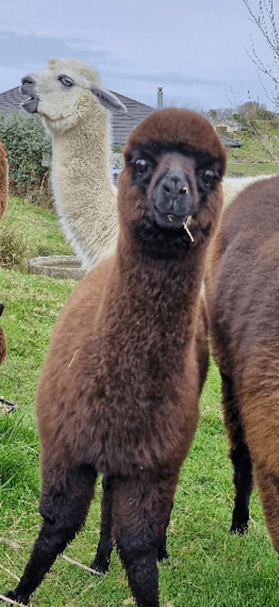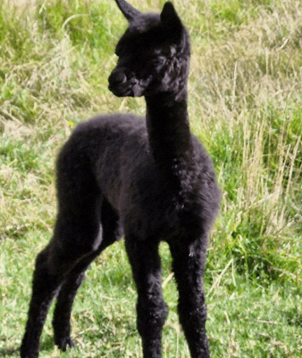 Our first cria born here! Perfect example of a pure black alpaca. Full of attitude like his mum Nicola.